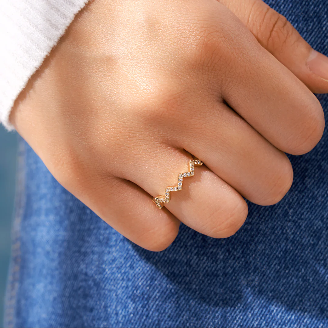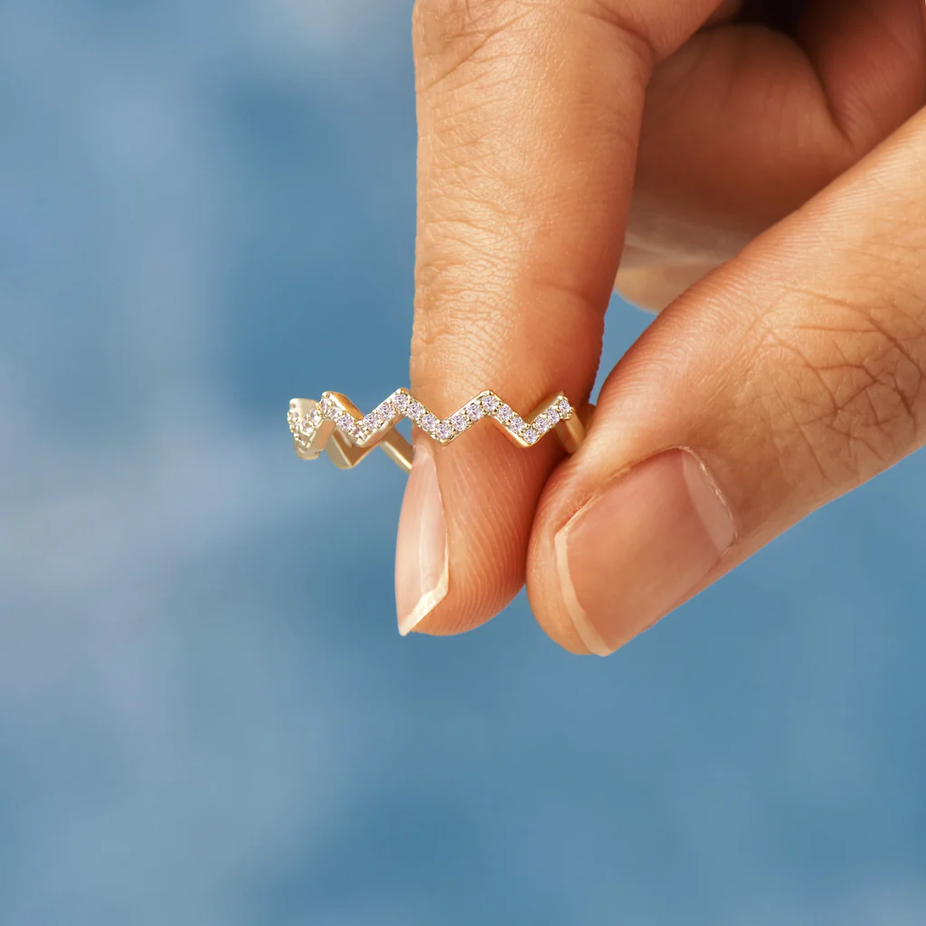 This wave ring beautifully symbolizes the highs and lows in life
