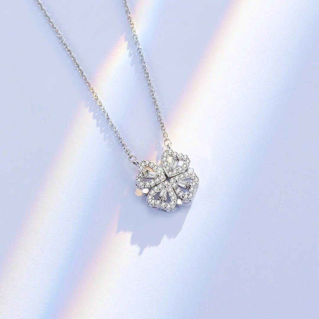 The Necklace can be worn in 2 ways: lucky Clover and romantic four Hearts. The pendant magnetically joins the hearts into the clover